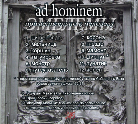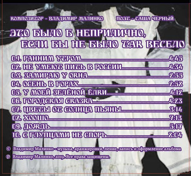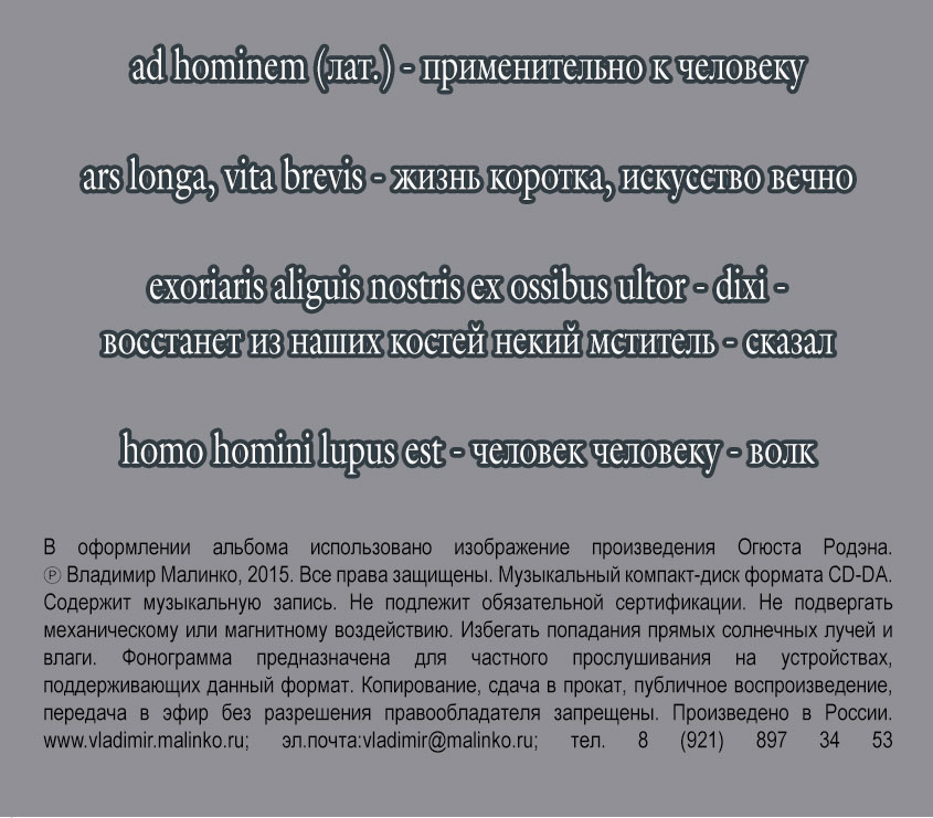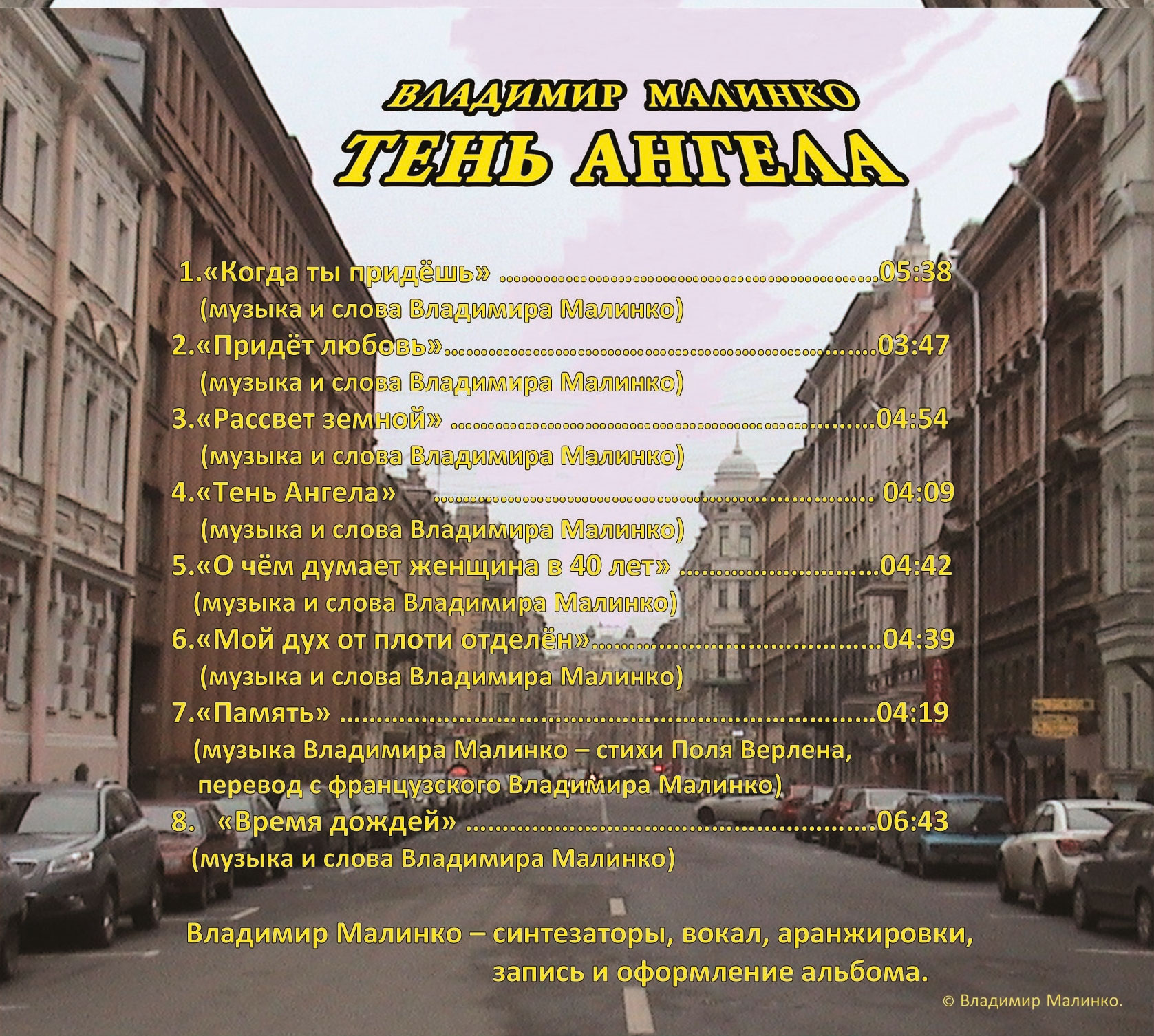 Владимир Малинко - вокал, синтезаторы, аранжировки, запись и оформление альбома - 2014 год